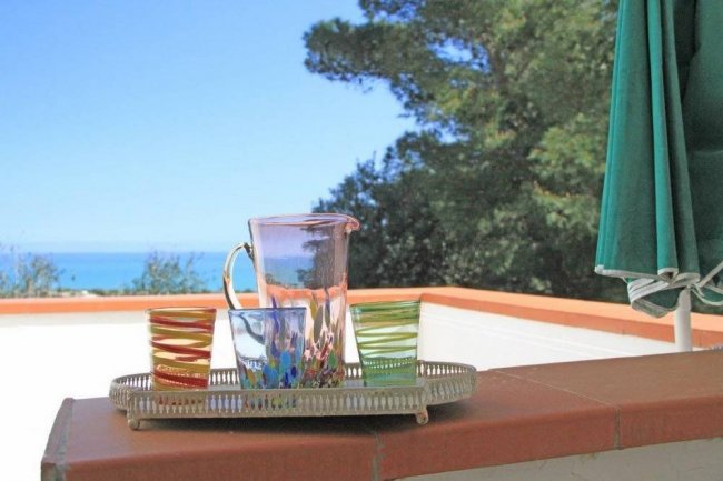 2 camere da letto matrimoniale, camera con letto a castello, soggiorno con angolo cottura, bagno con doccia e bidet e veranda, ventilatore a soffitto nelle camere da letto.