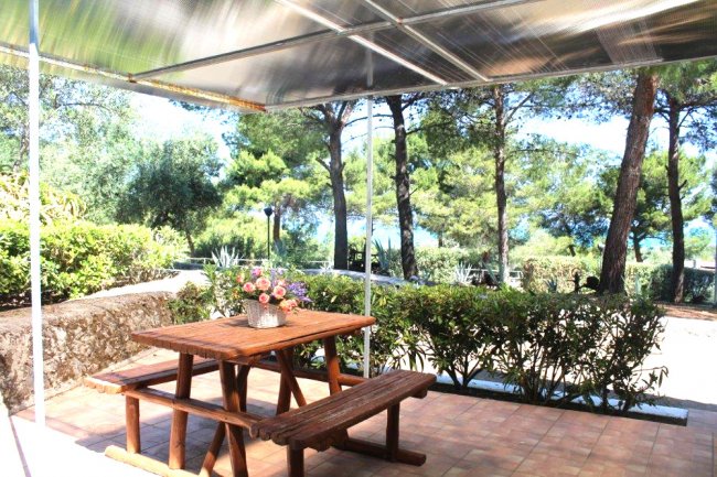 2 camere da letto matrimoniale, salone con divano letto matrimoniale e cucina, bagno con doccia e bidet, veranda esterna, ventilatore a soffitto nelle camere da letto.