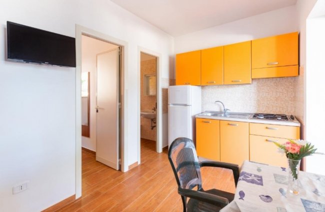appartamento in palazzina composto da soggiorno con angolo cottura, letto matrimoniale e letto a castello, con bagno privato e veranda esterna coperta ed attrezzata.